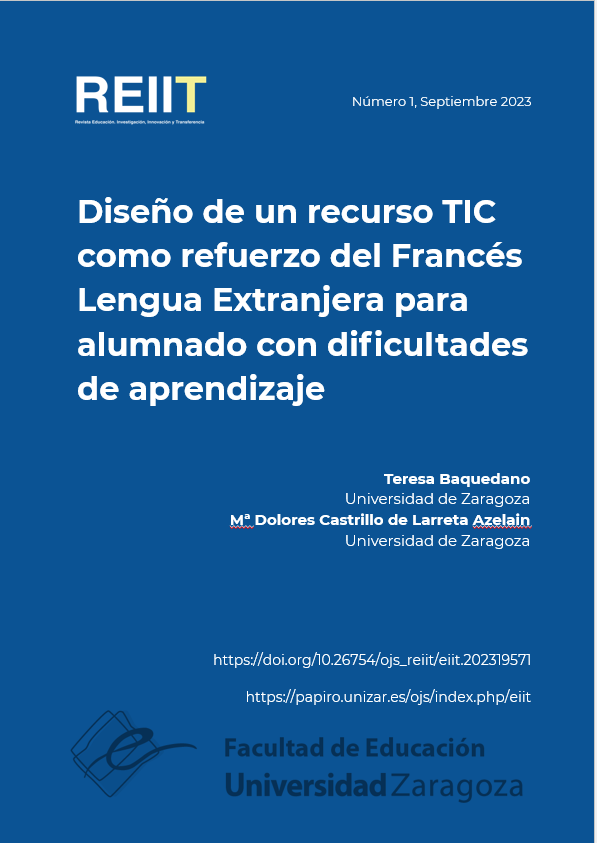 Diseño de un recurso TIC como refuerzo del Francés Lengua Extranjera para alumnado con dificultades de aprendizaje. (2023). Revista educación, investigación, innovación Y Transferencia, 3. https://doi.org/10.26754/ojs_reiit/eiit.202319571